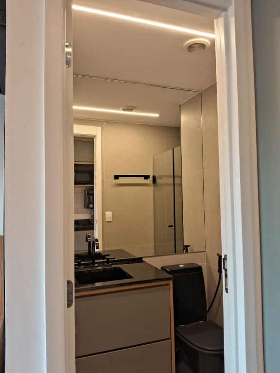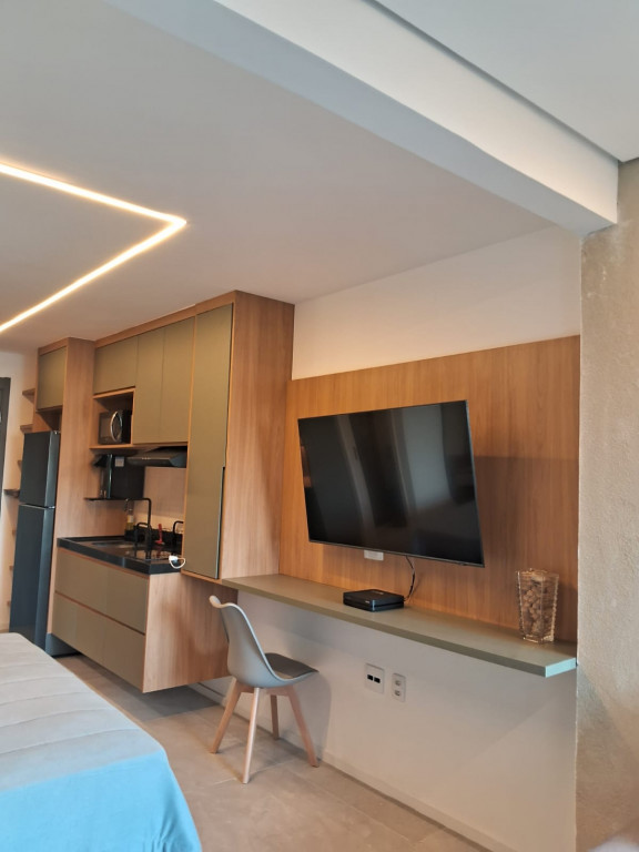 Belíssimo apartamento NOVO, TOTALMENTE MOBILIADO, VARANDA, 1 dormitório, sala, 1 banheiro, cozinha, lavanderia.
