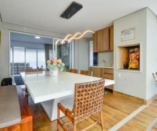 Belíssimo apartamento TODO MOBILIADO, COM SUÍTE, VARANDA GOURMET, 3 dormitórios sendo 3 suítes, sala de jantar e estar, 4 banheiros, 4 vagas de garagem, cozinha, lavanderia, imóvel bem iluminado, arejado e com conforto e praticidade.